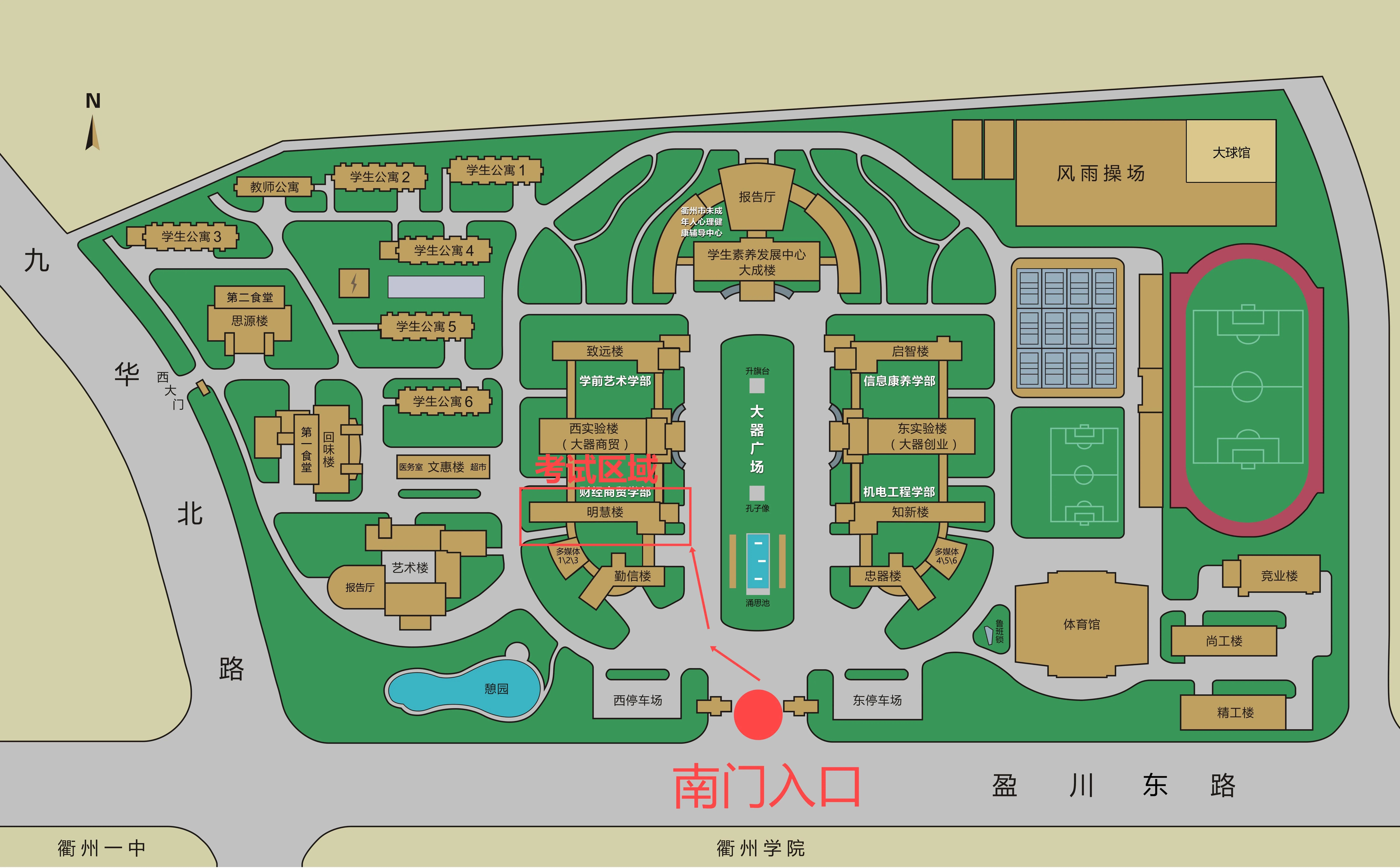 此次考试考点设在衢州中专,考点地址:盈川东路588号,考生从南门进入考点。